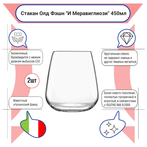 2 шт. Стакан Олд Фэшн "И Меравиглиози" "Bormioli Luigi" хр.стекло 450мл D 91 H 99мм прозр. (Италия)
