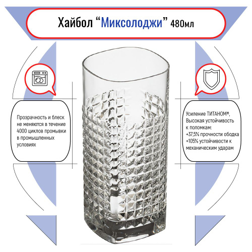 Стакан стеклянный "Миксолоджи" 480мл D 74, H 160мм хрустальное стекло (хайбол)