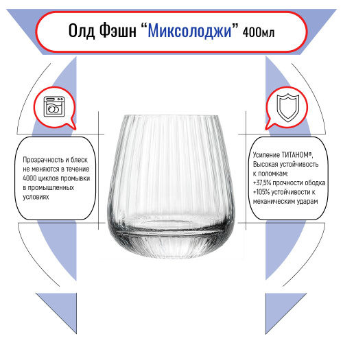 Олд Фэшн "Миксолоджи" 380мл хрустальное стекло D 86, H 96мм
