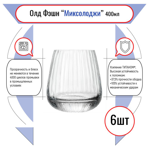 Олд фэшн Миксолоджи (6 шт.) хрустальное стекло 400мл