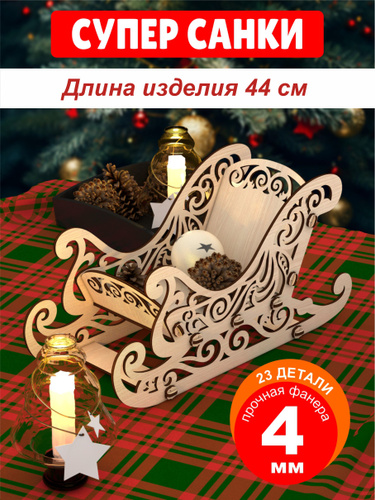 Новогодние санки из дерева 22*17*44 см. Новогодний сувенир