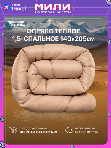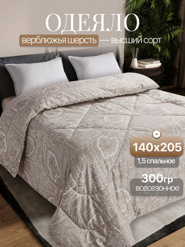 milan textile Одеяло Полуторный 145x205 см, Всесезонное, с наполнителем Верблюжья шерсть, комплект из 1 шт