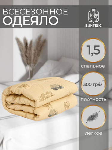 Винтекс Одеяло Полуторный 142x205 см, Всесезонное, с наполнителем Верблюжья шерсть, Силиконизированное волокно, комплект из 1 шт