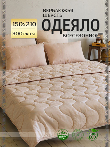 АСИКА комфорт Одеяло Полуторный 150x210 см, Всесезонное, с наполнителем Верблюжья шерсть, Экофайбер, комплект из 1 шт