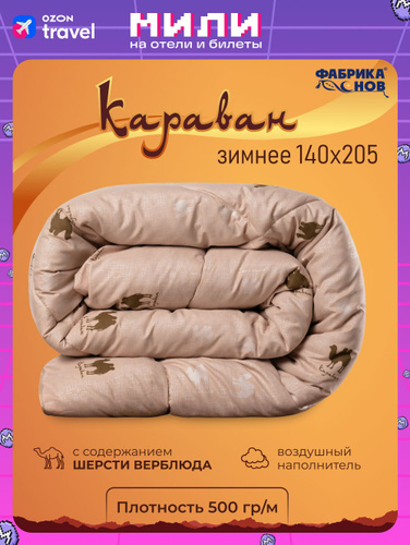 Одеяло 1,5 сп "Караван" зимнее (140х205) верблюжья шерсть