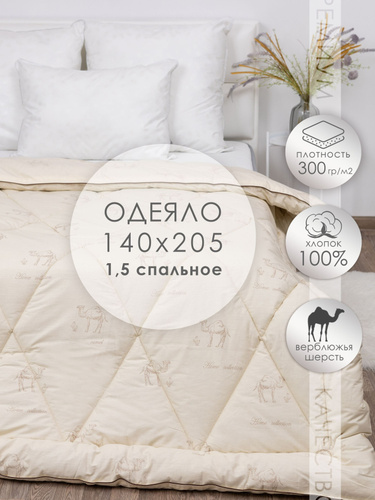 IMTEX HOME Одеяло Полуторный 140x205 см, Всесезонное, Летнее, с наполнителем Верблюжья шерсть, комплект из 1 шт