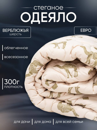 Одеяло стеганое наполнитель - верблюжья шерсть, плотность - 350 г гр/м2, ткань - тик 100% хлопок.
