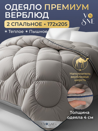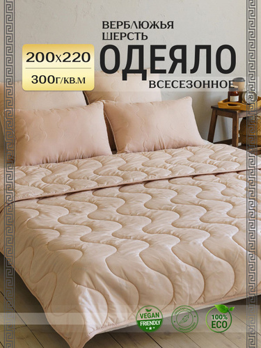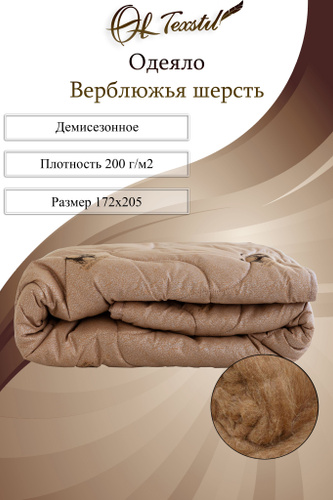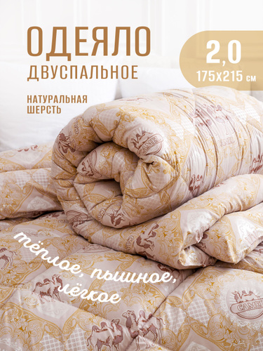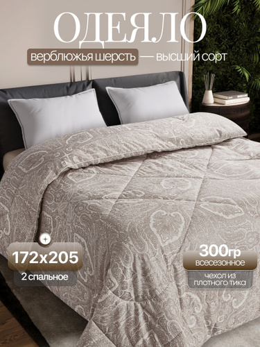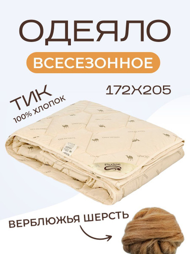Одеяло Двуспальный 172x205 см, Всесезонное, с наполнителем Верблюжья шерсть