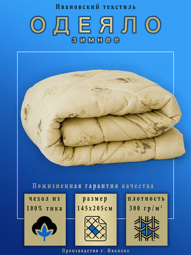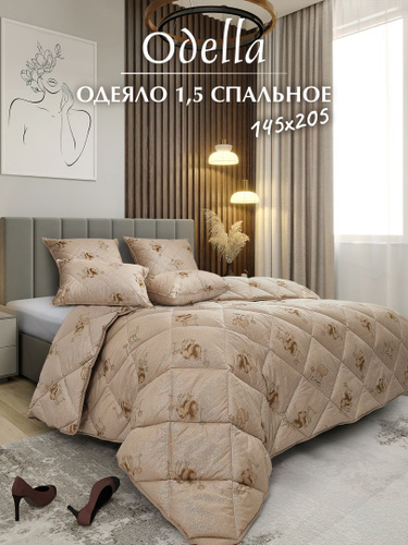 Одеяло 1 5 спальное зимнее 140х205см ODELLA "Верблюжья шерсть", наполнитель - силиконизированное волокно 200г.
