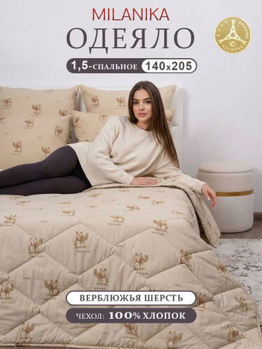 Одеяло MILANIKA 1,5 спальное 140х205 "Верблюжья шерсть" всесезонное Премиум MILANIKA