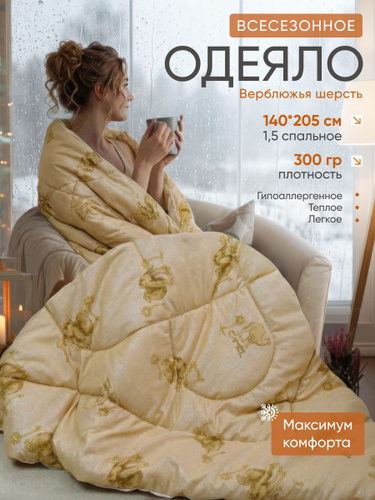 Одеяло 1 5 спальное верблюжье всесезонное стеганое легкое