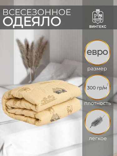 Винтекс Одеяло Евро 200x220 см, Всесезонное, Зимнее, с наполнителем Верблюжья шерсть, комплект из 1 шт