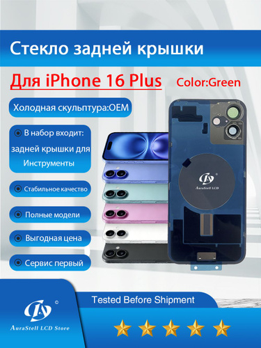 Задняя крышка для iPhone 16 Plus в сборе со стеклом камеры, водонепроницаемая, с логотипом,Холодная скульптура OEM,магнитами,комплект для установки