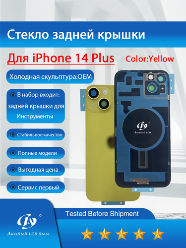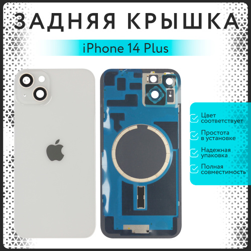 Задняя крышка для iPhone 14 Plus в сборе со стеклом камеры, водонепроницаемая, с логотипом,Холодная скульптура OEM,магнитами,комплект для установки