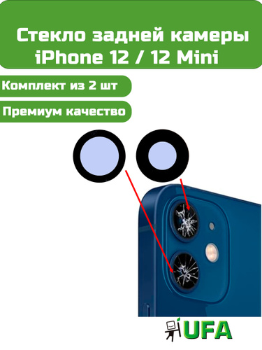 Стекло камеры iPhone 12 / 12 Mini (комплект 2 шт) Премиум качество