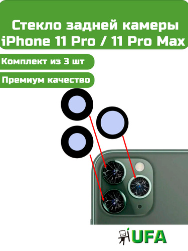 Стекло камеры iPhone 11 Pro / 11 Pro Max (комплект 3 шт) Премиум качество