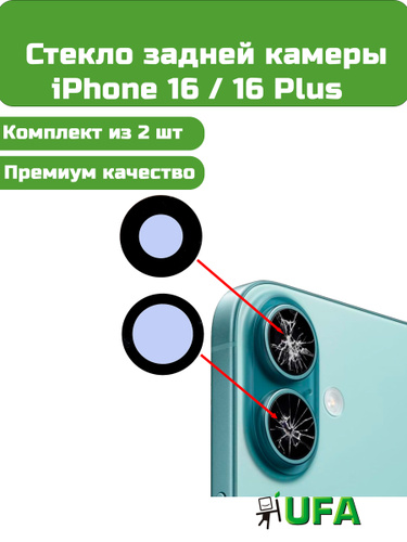 Стекло камеры iPhone 16 / 16 Plus (комплект 2 шт) Премиум качество