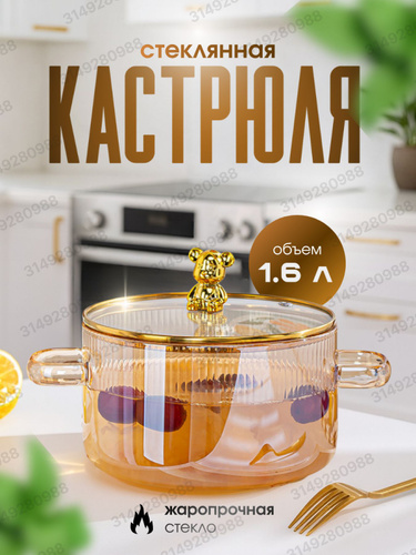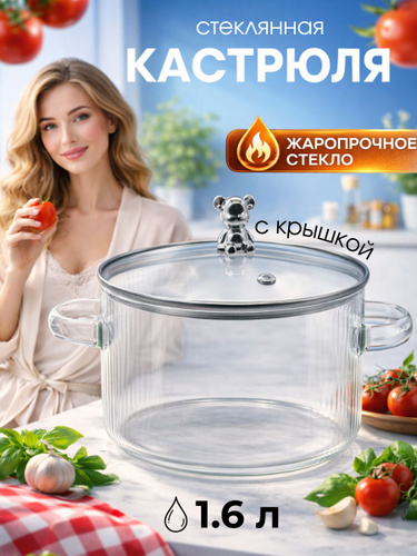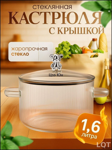 Кастрюля, Стекло, 1,6 л, 1 шт