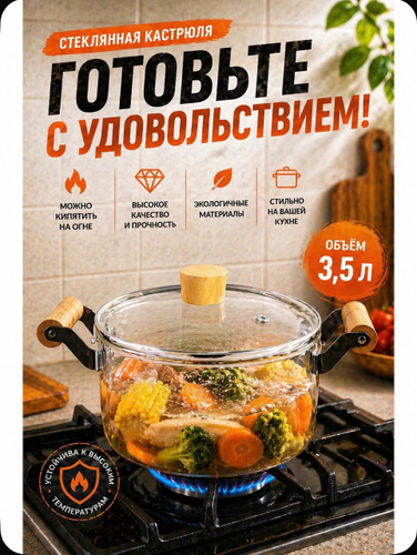 Кастрюля, Стекло, 2,5 л, 1 шт