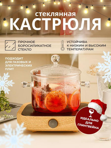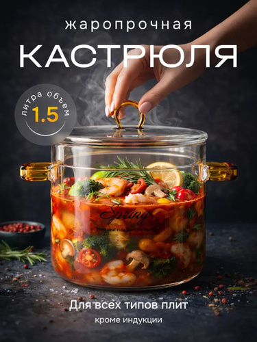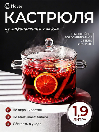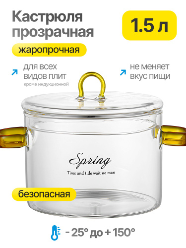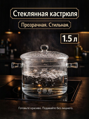 Кастрюля, Боросиликатное стекло, Стекло, 1,5 л