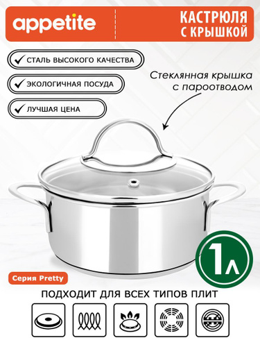Appetite Кастрюля Pretty, Нержавеющая сталь, Стекло, 1 л