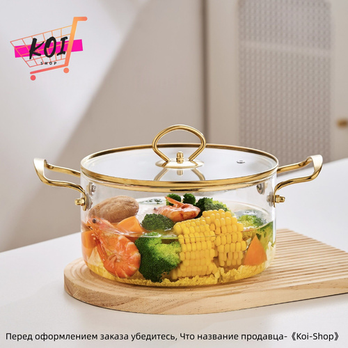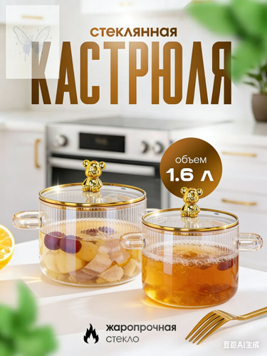 Золотистая стеклянная кастрюля с крышкой 1,6 л универсальная