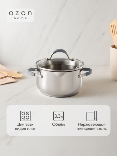 Кухонная кастрюля с крышкой 3,3 литра из нержавеющей стали со стеклянной крышкой, глянцевая