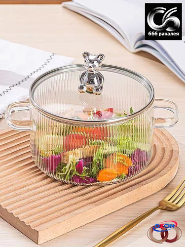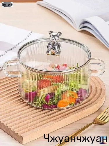 Кастрюля с крышкой стеклянная 1 л 600 мл с антипригарным покрытием