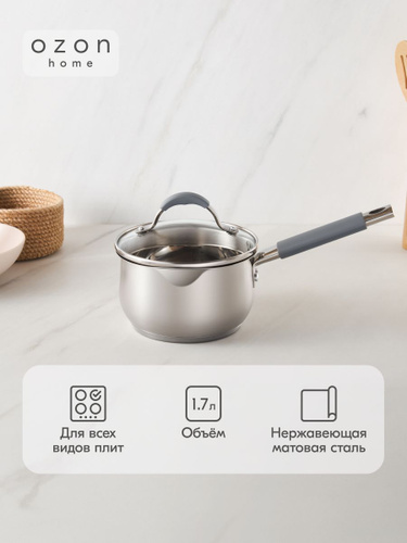 Кухонный ковш с крышкой 1,7 литра из нержавеющей стали со стеклянной крышкой, матовый.
