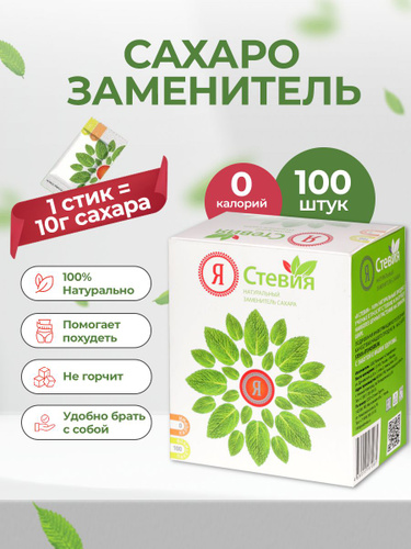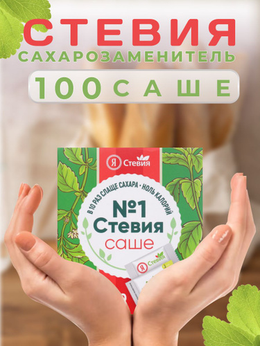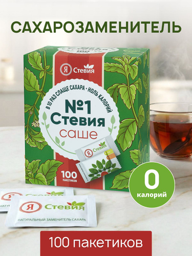 Натуральный сахарозаменитель стевия в саше 100 шт. Подсластитель "Я Стевия"