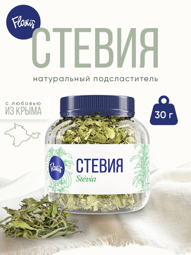 "Стевия" в банке (лист) от Floris , сушеные листья стевии, натуральный подсластитель, сахарозаменитель, натуральная добавка к чаю, 30 г