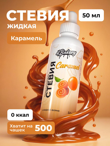 Сахарозаменитель стевия жидкая 4Bakery 50 мл Карамель подсластитель