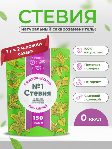 Натуральный сахарозаменитель 150 гр, Натуральный подсластитель слаще сахара в 10 раз "Я Стевия"