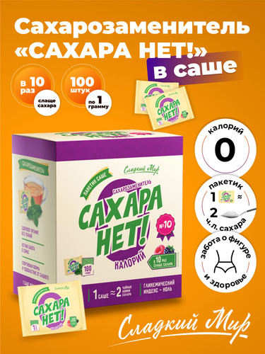 Сахарозаменитель "САХАРА НЕТ!" 100 саше, в 10 раз слаще