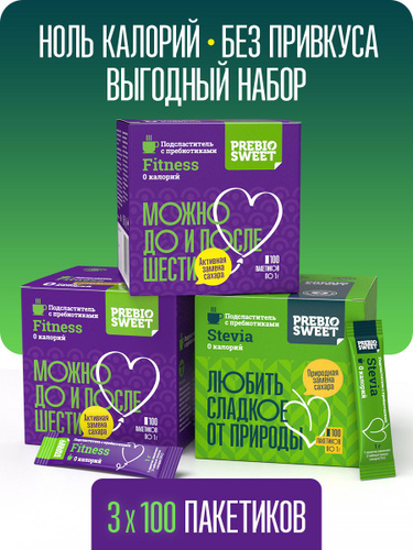 Пребиосвит Сахарозаменитель в стиках набор Фитнес 2*100 шт и Стевия 100шт