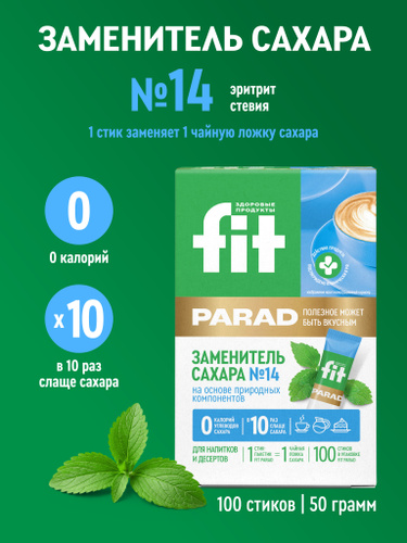Сахарозаменитель ФитПарад № 14, на основе эритритола и стевии, СТИКИ 100 шт.