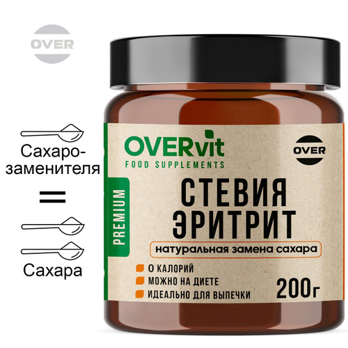 Стевия эритрит натуральный сахарозаменитель. Диетические продукты. Фитнес. 200 г