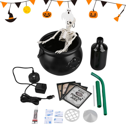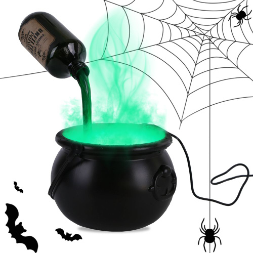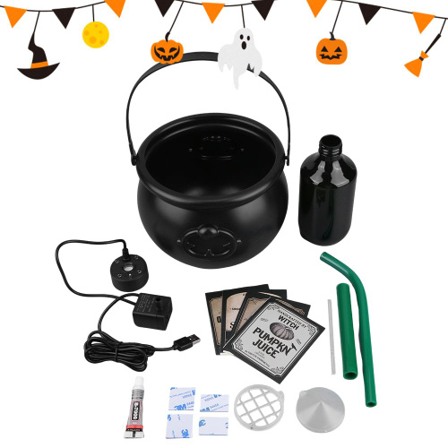 Чёрный котёл ведьмы с эффектом тумана для украшения на Хэллоуин