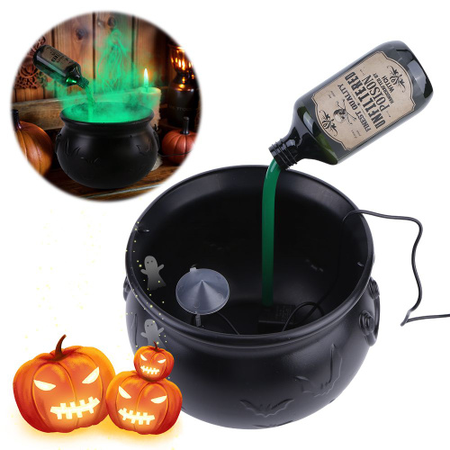 Чёрный котёл ведьмы для Хэллоуина с эффектом тумана и подсветкой