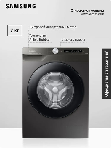 Узкая стиральная машина Samsung WW70AG6S23ANLP, 7 кг, с электронным управлением, инверторным мотором, обработкой паром, технологией Eco Bubble, серый
