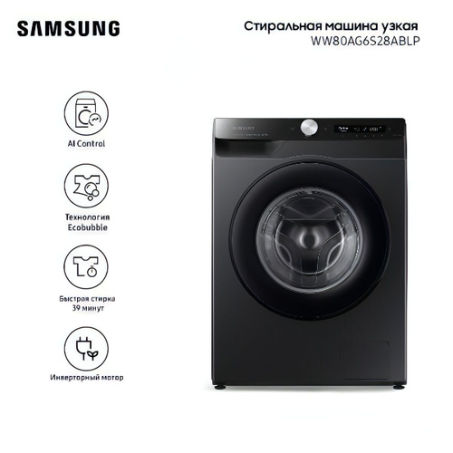 Стиральная машина узкая Samsung WW80AG6S28ABLP черный