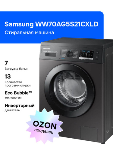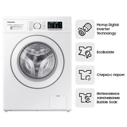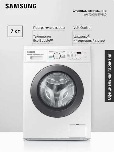 Стиральная машина Samsung WW70AG4S21VELD 7 кг с паром, инверторный мотор, технология Ecobubble, система Volt Control, очистка барабана Drum Clean