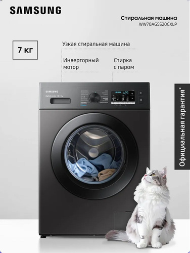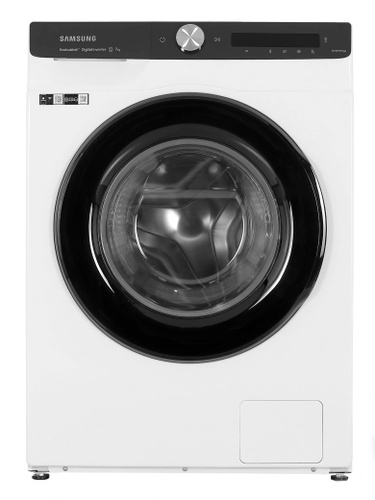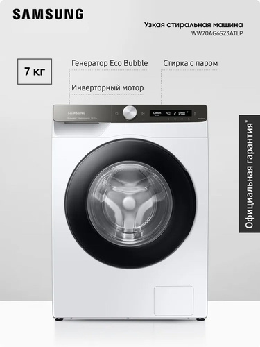 Узкая стиральная машина Samsung WW70AG6S23ATLP, 7 кг, с электронным управлением, инверторным мотором, обработкой паром, технологией Eco Bubble, белая/черная