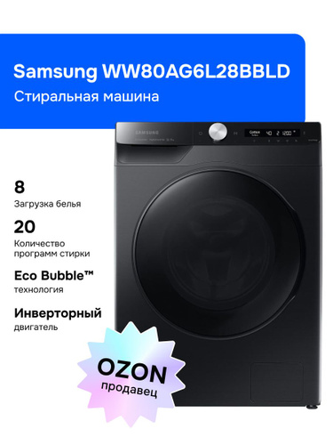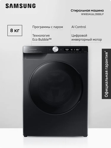 Стиральная машина Samsung WW80AG6L28BBLP 8 кг с паром, инверторный мотор, функция с ИИ AI Control, технология Ecobubble, AquaProtect, система Volt Control