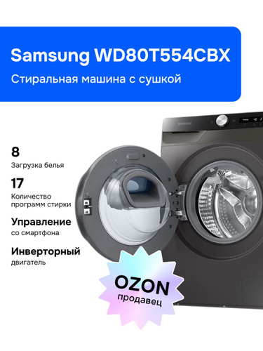 Samsung WD80T554CBX Стиральная машина, 8 кг, с сушкой, серебристая