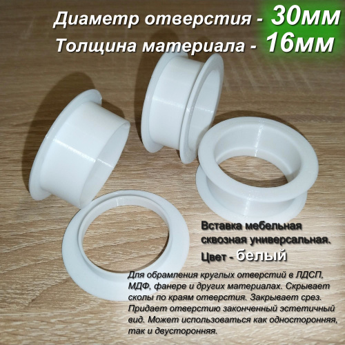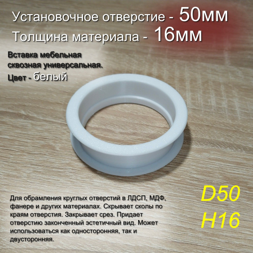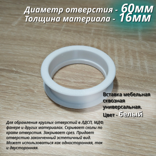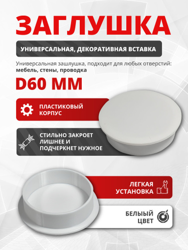 Заглушка для отверстия D60 мм универсальная, белая декоративная вставка, плотная посадка, пластиковая