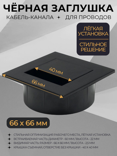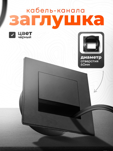 Заглушка кабель-канала квадратная для провода Черная D 60