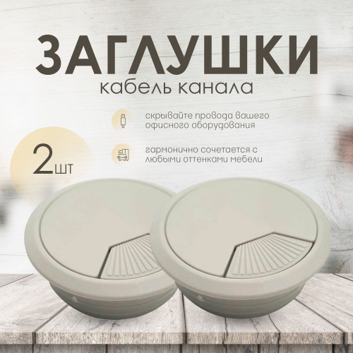 Заглушка для проводов, кабель канала пластиковая мебельная для столешницы, 2шт, светло-серый
