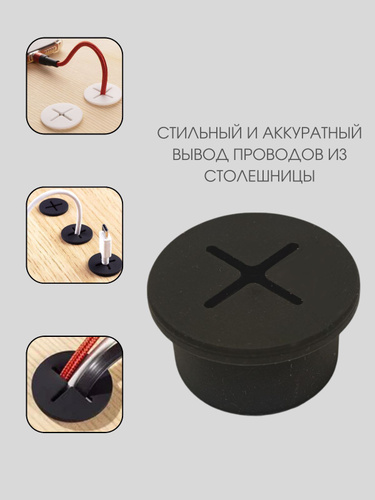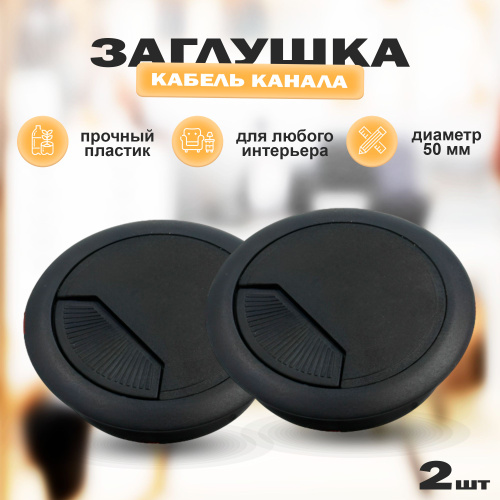Заглушка для проводов стола, кабель канала пластиковая мебельная для столешницы, 2шт, черная