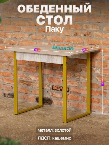 Стол кухонный обеденный лофт 90х60х75.5 см Паку золотой/серый